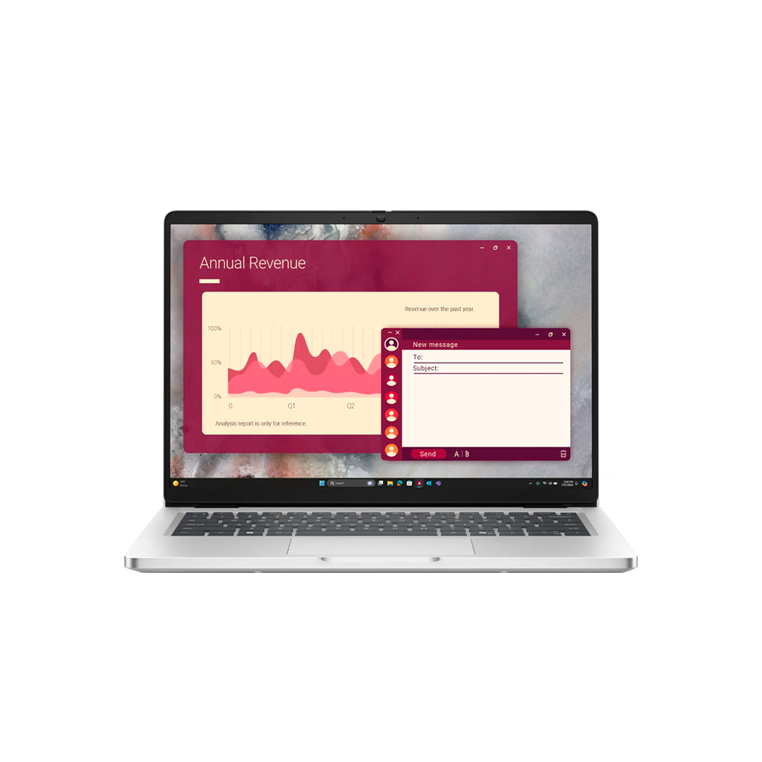 Equipada con Intel® Core™ 5 120U, esta laptop ofrece un desempeño fluido para multitarea, aplicaciones empresariales y trabajo administrativo.